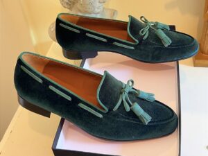 GREEN VELVET ENVY LOAFERS and GREEN FRINGE