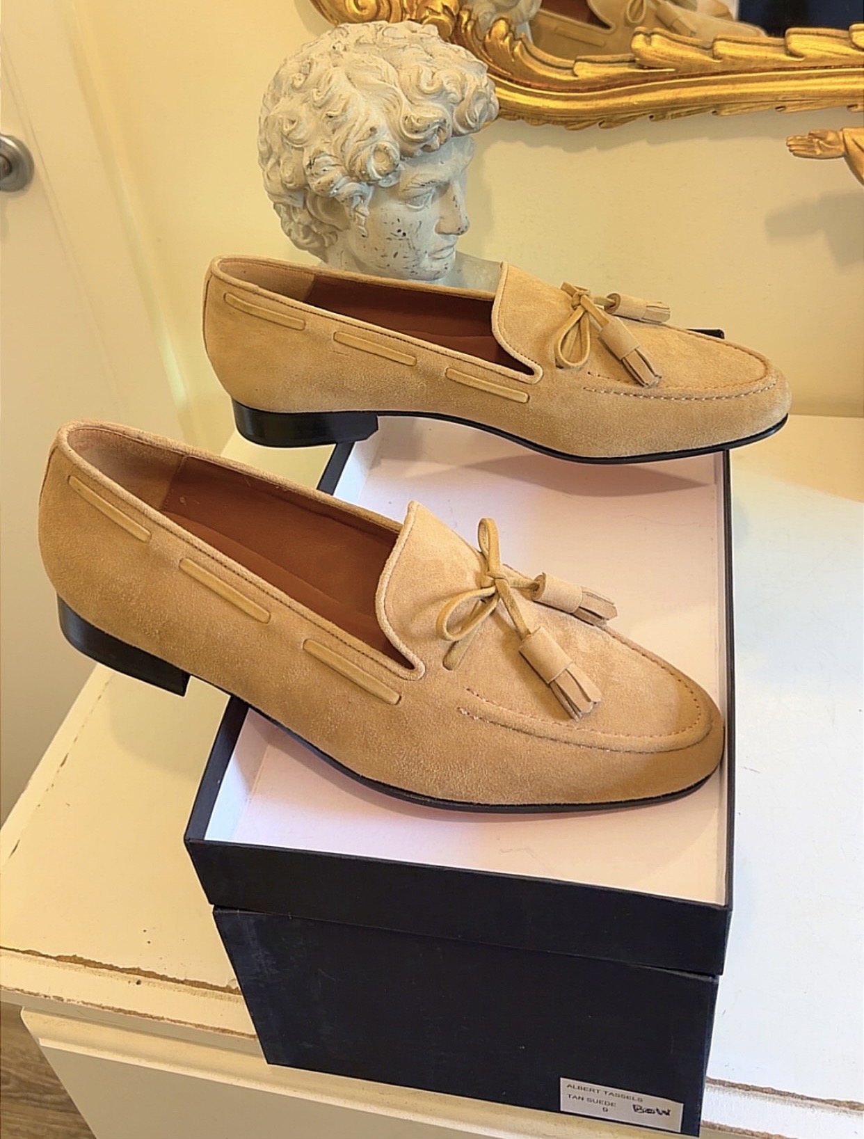 Hand Made BIEGE ALBERT BOW LOAFERS ( Red Leather Sole )